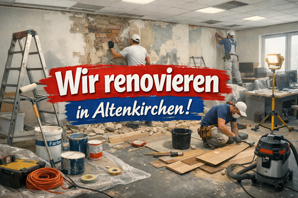 unsere Geschäftsstelle in Altenkirchen wird zwischen dem 18.02. bis einschließlich 24.02.2026 renoviert.