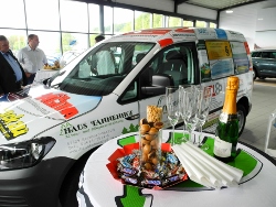Einen herzlichen Dank sprach die Vorsitzende der Beteuungsvereine der AWO im Landkreis Altenkirchen Maria Fuchs den Sponsoren des neues Sozialmobils aus. In Zusammenarbeit mit der Firma Rapid Mobilwerbung GmbH gelang es, 43 Firmen aus der Region für eine Werbefläche auf dem VW Caddy zu gewinnen. Beim Autohaus Kamp in Wissen hatten die Sponsoren bei einem Imbiss die Gelegenheit, das neue Fahrzeug in Augenschein zu nehmen.